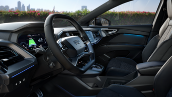 Gamme Audi Q4 e-tron : consommation électrique en cycle mixte WLTP (kWh/100 km) : 16,1 - 18,2. Rejets de C02 en cycle mixte WLTP (g/km) : 0. Valeurs au 01.07.2025, susceptibles d’évolution.